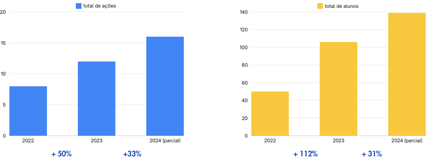 Número de ações e alunos extensionistas (2022 - 2024)