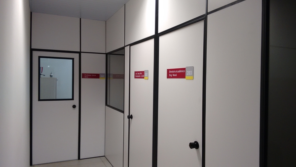 Gabinetes Docentes: São 15 gabinetes, que atendem às necessidades dos docentes do curso em termos de espaço de trabalho, com climatização, acesso à rede de dados, mobiliário e equipamentos compatíveis às necessidades acadêmicas e de pesquisa.