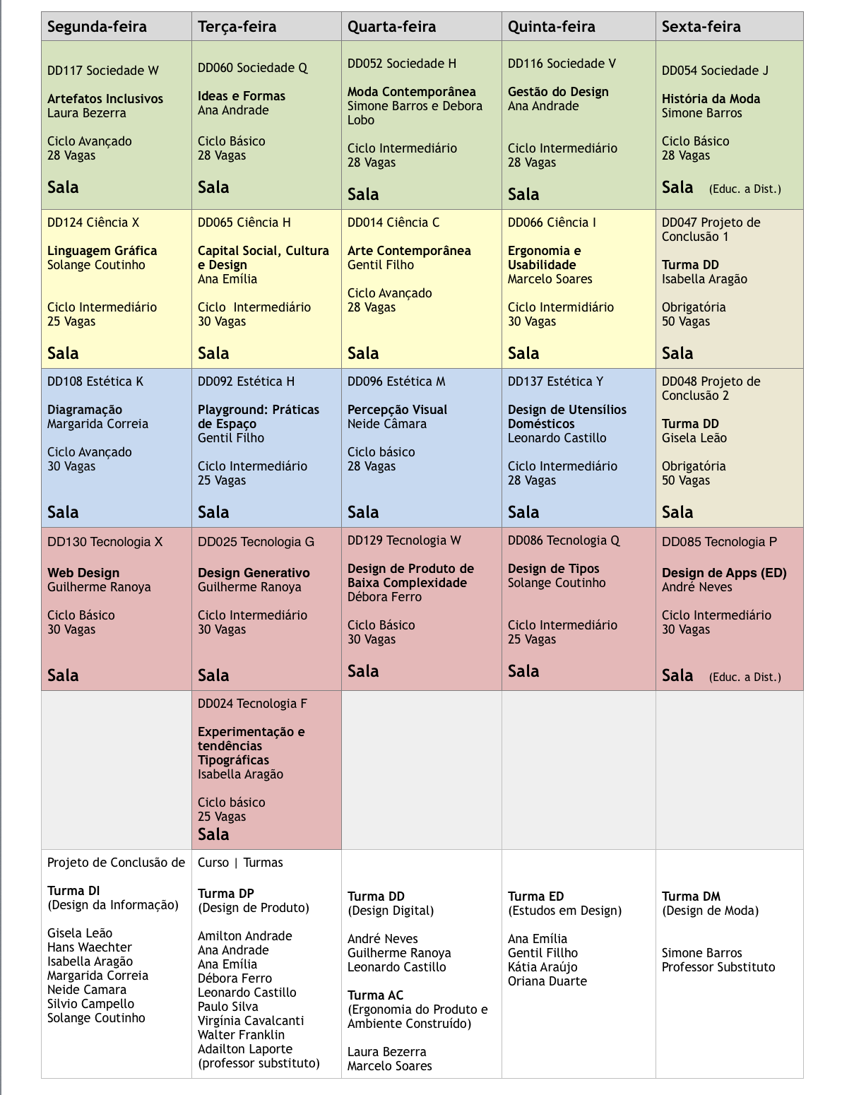 Grade de Horários e Ementas Grade de Horários e Ementas