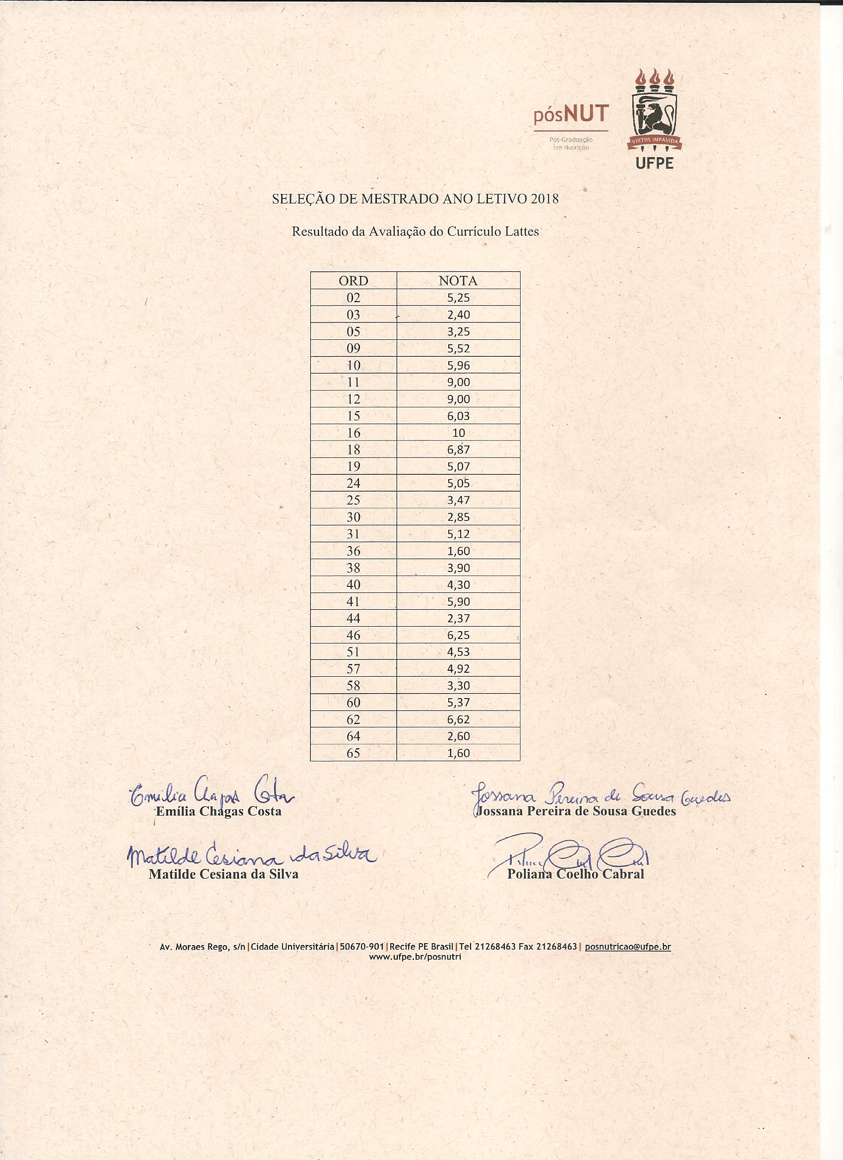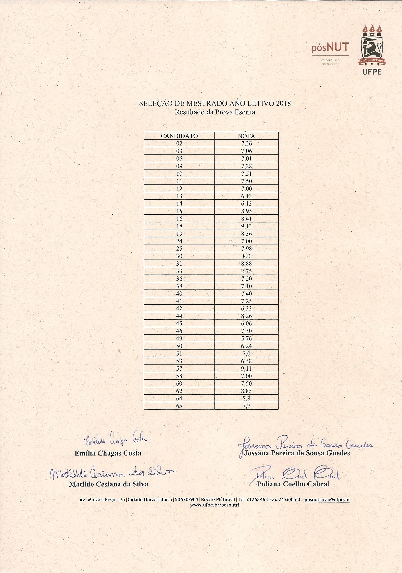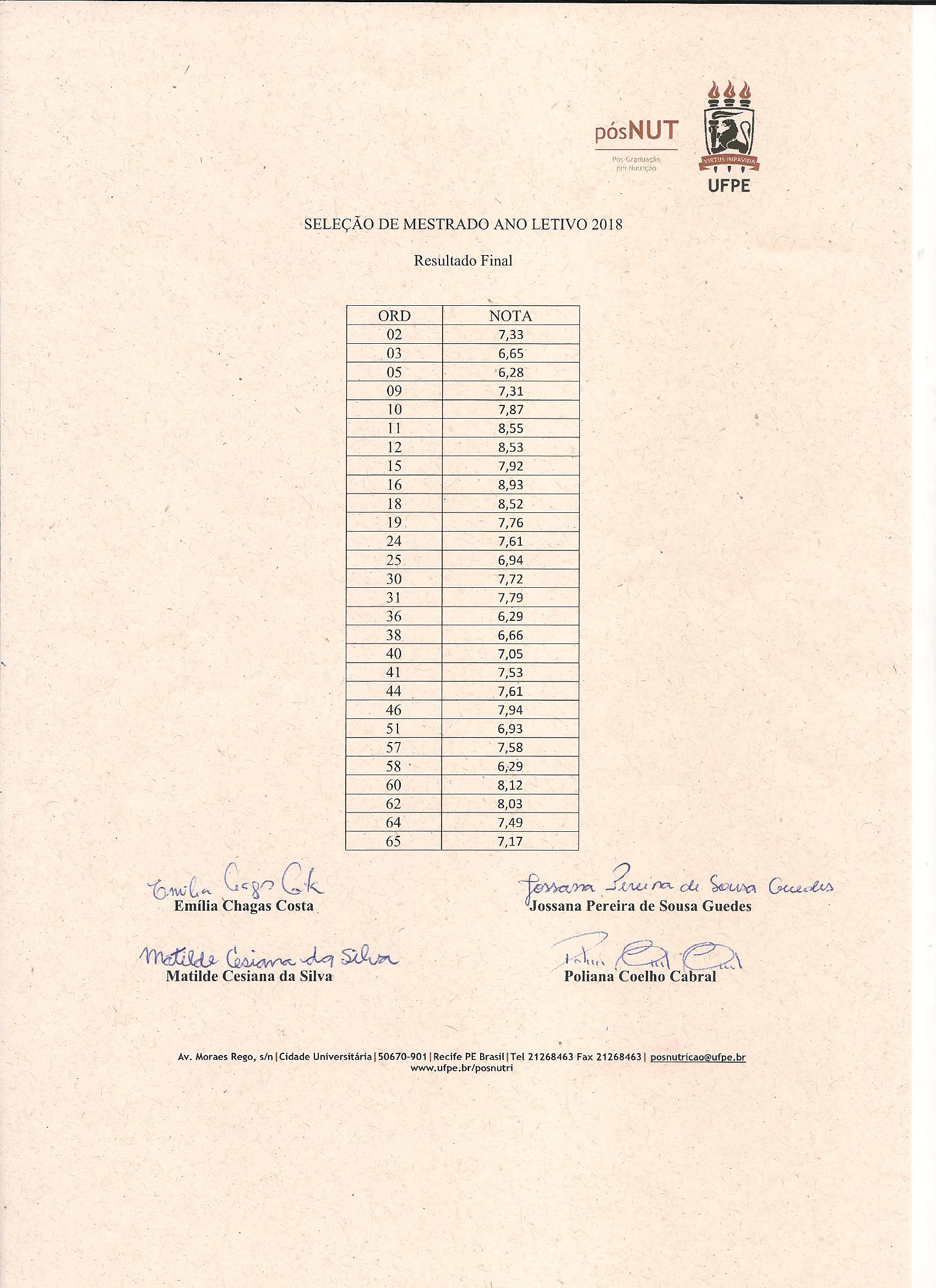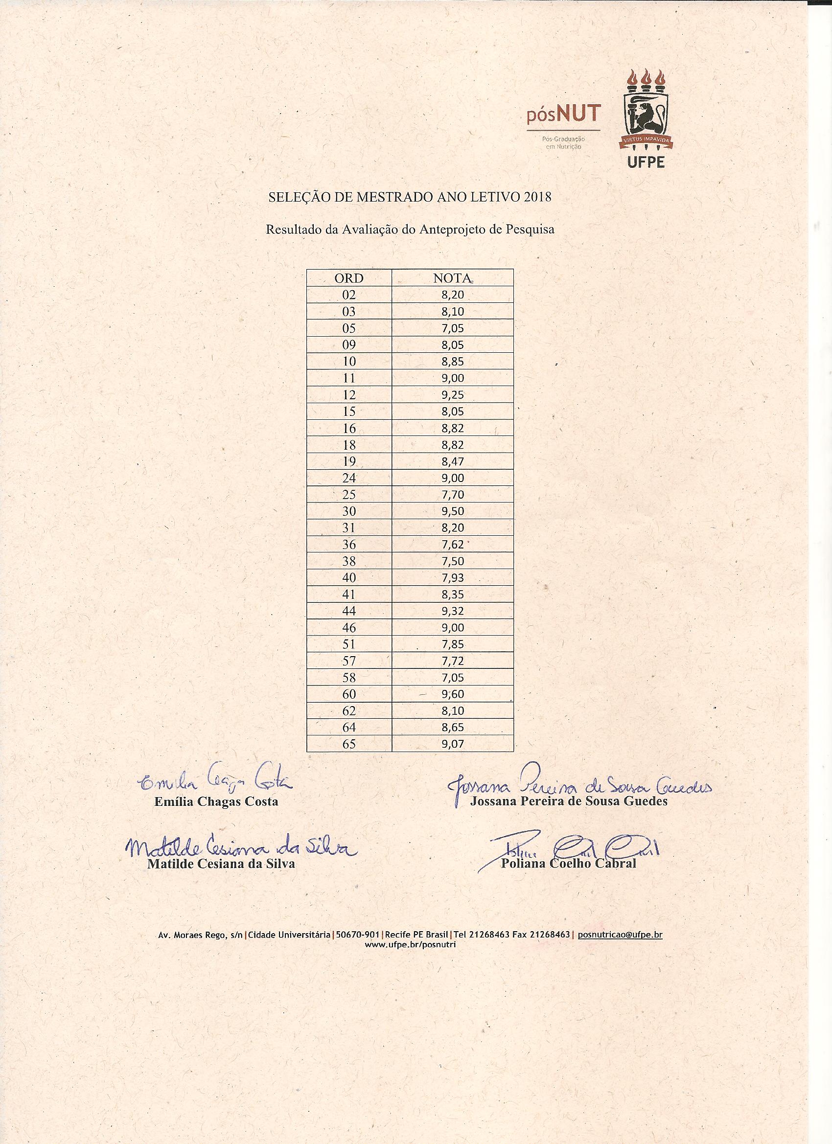 *As(Os) candidatas(os) poderão interpor recurso do resultado através do e-mail da secretaria do programa, posnutricao@ufpe.br, até às 12h00 do dia 25 de novembro de 2023.