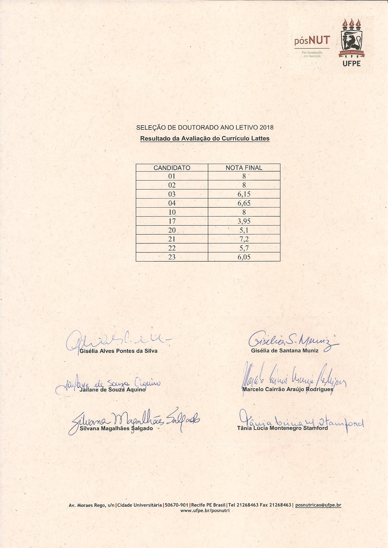 | Retificação do Edital: - Os discentes do curso de doutorado do PPGN/UFPE habilitados para participar do processo de seleção devem reunir a documentação necessária (item 5 deste edital) e entregá-la junto a secretaria do programa até o dia 11 de fevereiro de 2019, das 08:00 às 15:00 h;